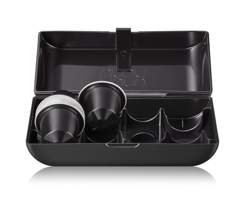 Er is veel leuks aan deze Minipresso NS2 Case. Gemaakt van duurzaam EVA-materiaal bedekt met een zachte en duurzame viltstof, is hij speciaal ontworpen om de Minipresso NS2 capsule-espressomachine te beschermen tegen dagelijkse stoten en krassen. Maar dat is nog niet alles, de koffer bevat een stevige capsulebox om acht koffiepads mee te nemen. Dat is genoeg koffie voor een reis naar bijna elke bestemming. Als u in de natuur bent, kan de capsulebox gebruikt worden om uw gebruikte capsules mee te nemen tot u een recyclingpunt bereikt. Een siliconen onderzetter en een microvezeldoek worden ook meegeleverd, waardoor het de perfecte NS2 capsule metgezel is. In uw rugzak, uw bagage of aan uw schouder, dankzij de meegeleverde draagriem bent u klaar voor uw volgende grote avontuur.